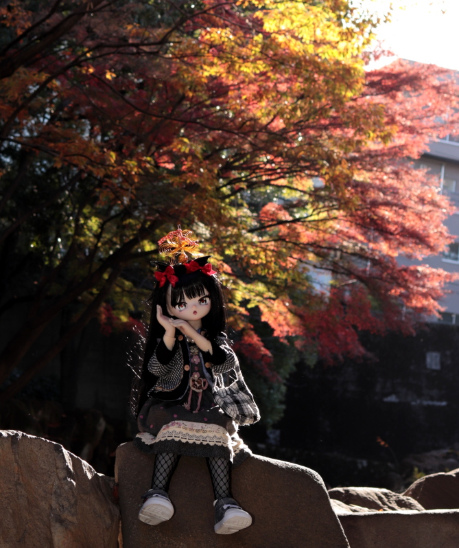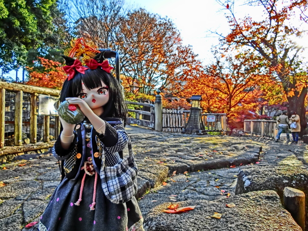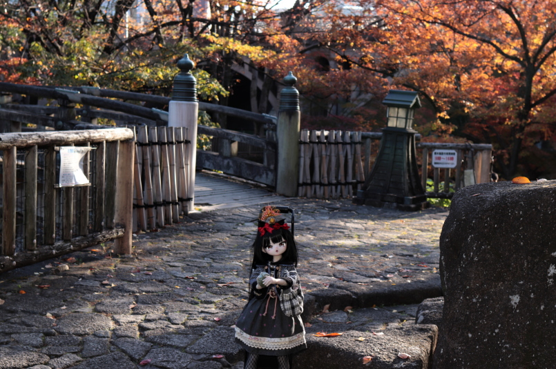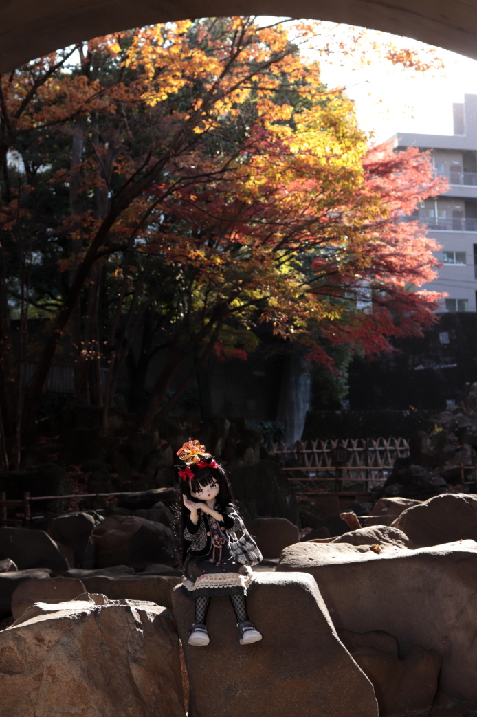 モミジは西日で明るい、そして逆光は強い、しかし橋の下で暗い、そんなポイントなのでカメラ設定とかストロボの減光or増光とか忙しいです